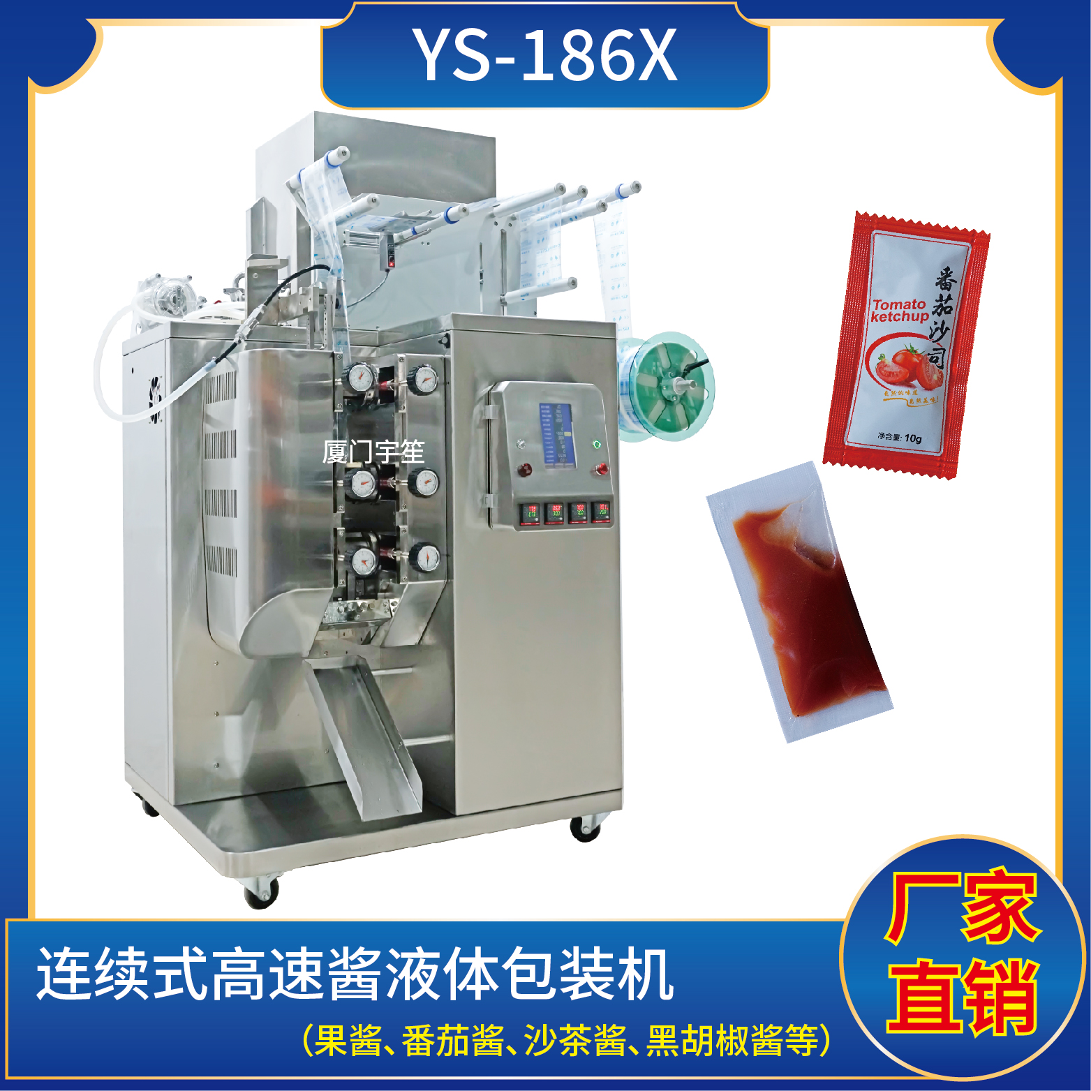 1、適用于番茄醬、咖喱醬、芝麻醬、油包、醋包、油潑辣子等醬料、液體等物品的計量包裝。