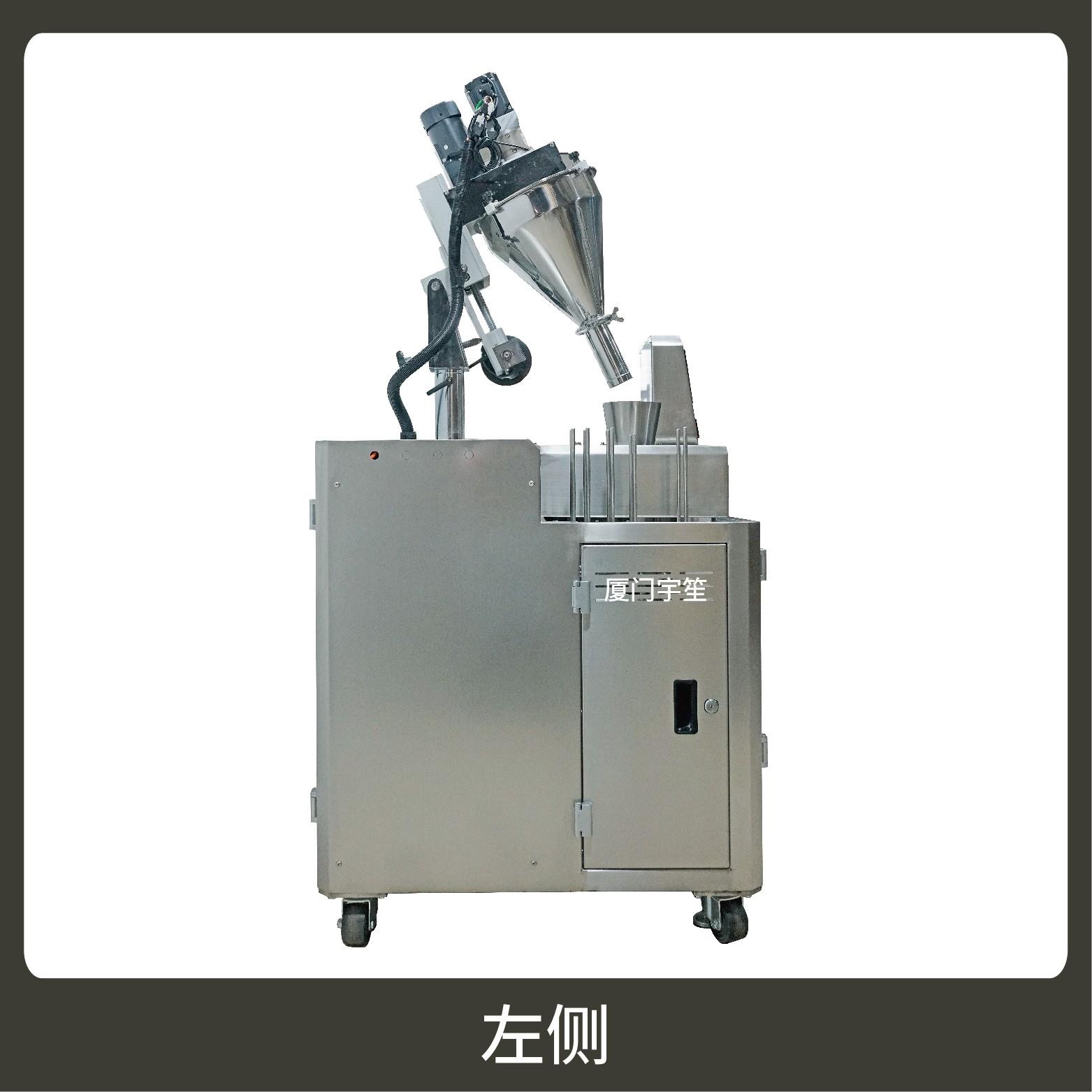 2、調(diào)試方便、占用空間小。包裝流程全自動,無需人工操作??筛鶕?jù)充填物料的性質(zhì)選配不同的下料結(jié)構(gòu)。