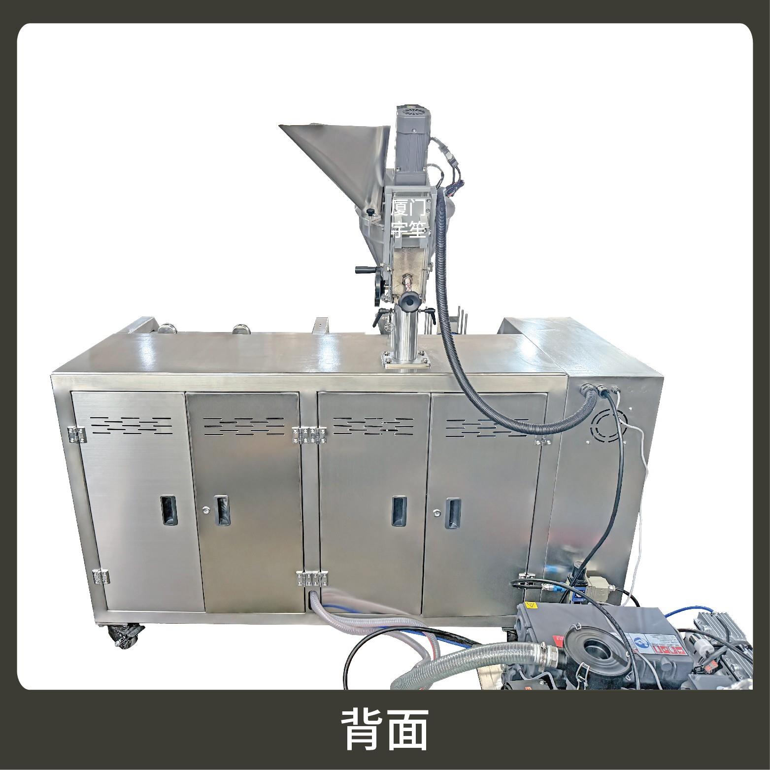 2、包裝流程全自動,可抽真空(真空度可達到-0.1Mpa)。可根據充填物料的性質選配不同的下料結構。