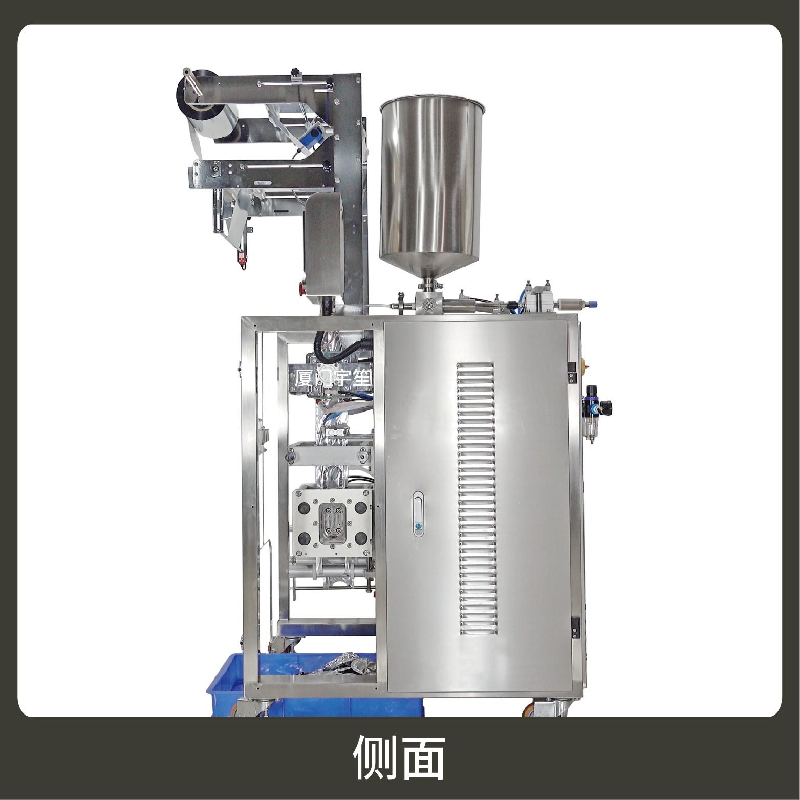 適用于食品、醫(yī)藥、化工、化妝品行業(yè)中液體、醬料等物品的計(jì)量包裝。可自動(dòng)完成制袋、計(jì)量、下料、封合、分切、計(jì)數(shù)、且可根據(jù)客戶要求配置打印批號(hào)等功能。