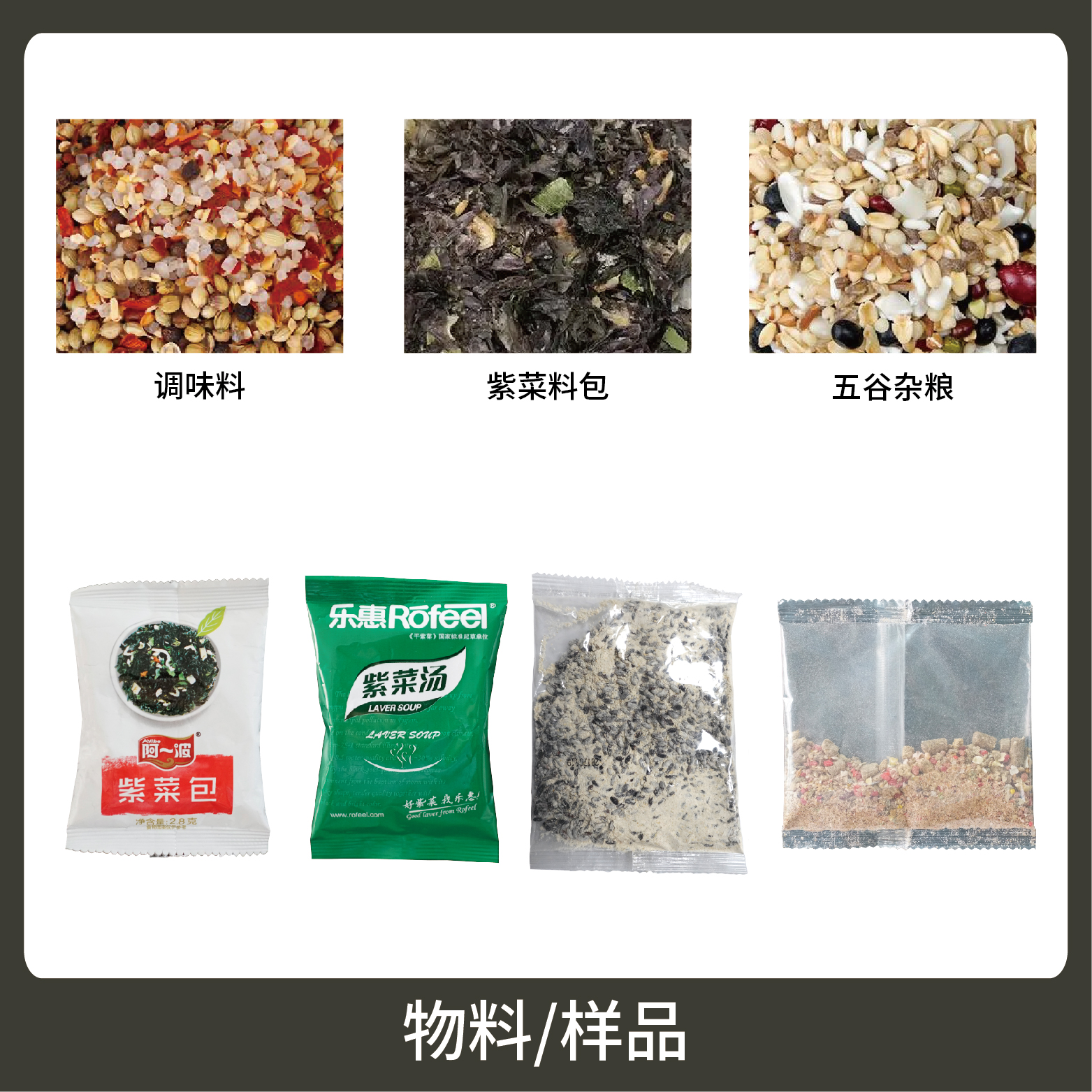適用于食品、醫(yī)藥、化工、化妝品行業(yè)中顆粒、粉劑、液體、醬料等物品的組合計量包裝,如裙帶菜、紫菜料包、調(diào)料包。